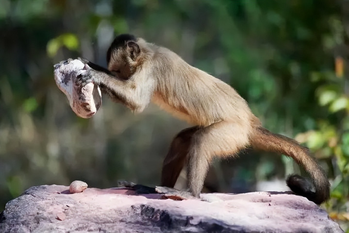 而猴科动物的脑容量普遍在 300 毫升左右,虽说脑容量并非决定智商的唯一关键因素,但通常而言,猴子被认为没有黑猩猩聪慧。然而,世界各地的卷尾猴在使用石头方面的本领,却远超黑猩猩。